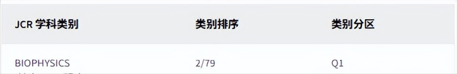 BIOPHYSICS(2/79)类别分区为:Q1;