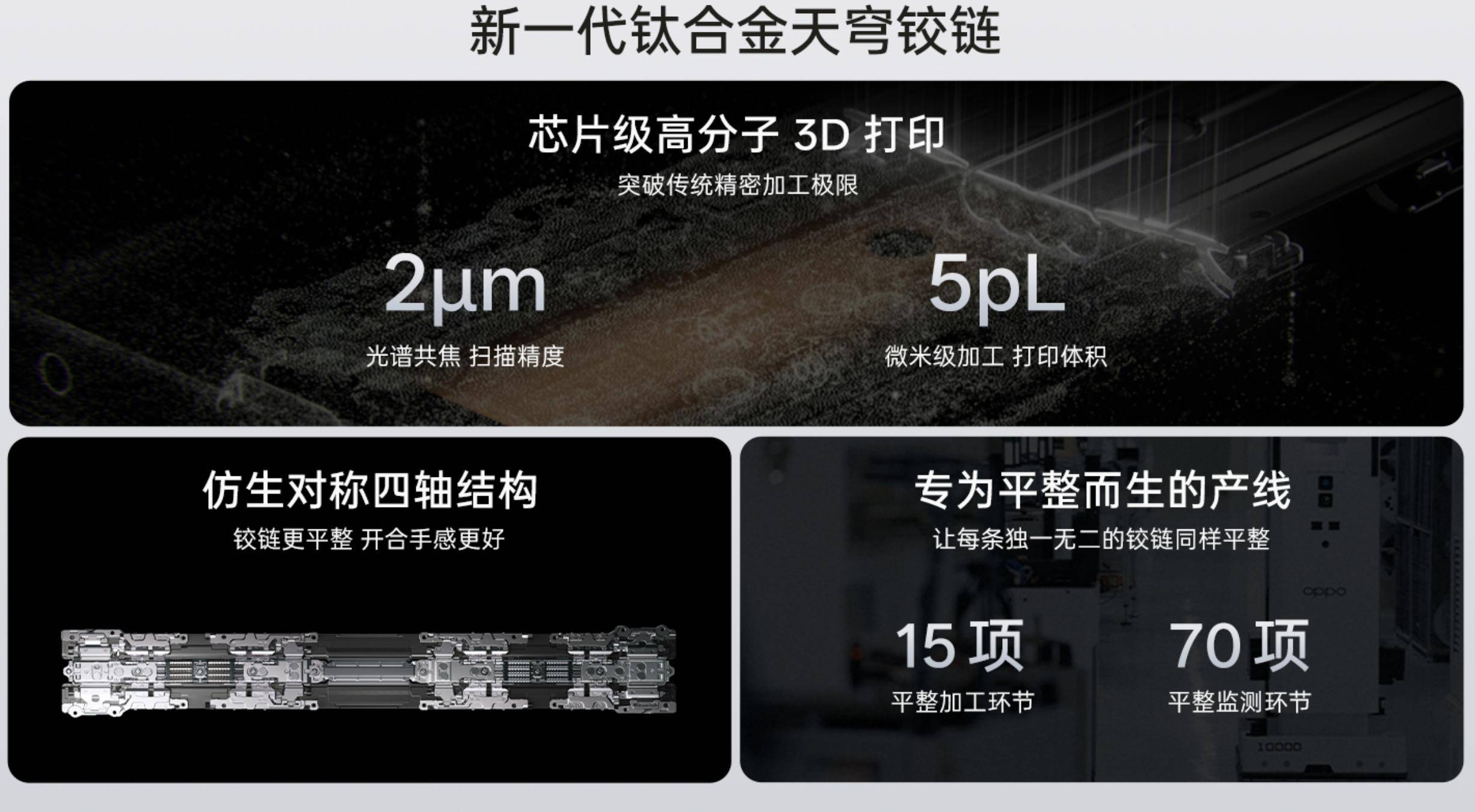 传统铰链表面存在微米级的起伏,无论怎么优化结构,总有一些“坑”填不平。对此,OPPO联合先导智能,研发了行业首个 “『芯片』级高分子3D打印技术” 。