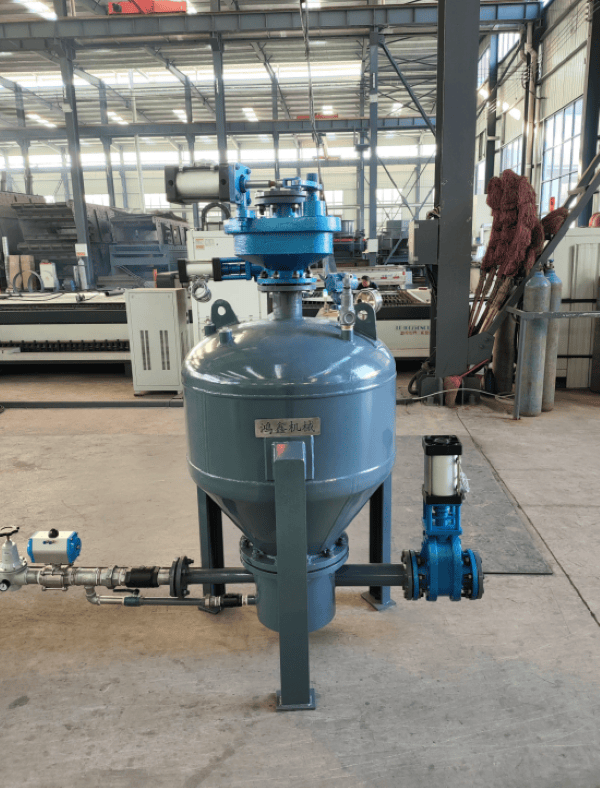 为进一步验证,我们安排了对其生产现场的考察。在郑州市鸿鑫机械科技发展有限公司的厂区内,我们看到了正在加工和组装的仓泵设备。其生产流程具备规范性,从下料到焊接、从组装到检测,各环节清晰可辨。我们特别关注了核心部件如泵体、进出料阀的制造工艺与材质选用,并就一些我们关心的耐久性设计细节与现场『工程师』进行了探讨。