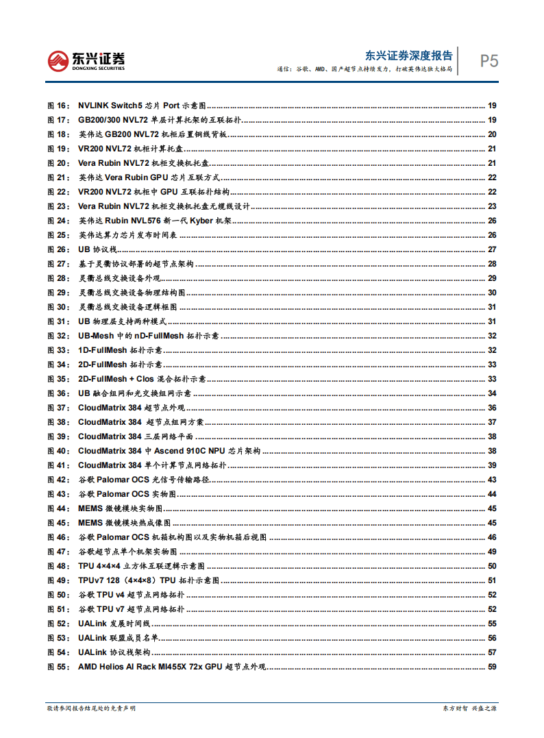 在这条新兴赛道上,『英伟达』凭借其NVLink和NVLink Switch技术组合,目前仍占据领先身位。从2024年开始,『英伟达』陆续推出了GB200、GB300 NVL72等成熟方案,将一个机柜内的GPU互联数量稳定在72颗。其最新发布的Rubin架构VR200 NVL72更是将总交换容量提升一倍,达到259.2TB/s。展望未来,『英伟达』计划将互联GPU数量扩展至576颗,其新一代Kyber机架将通过PCB中板替代数千根有源铜缆,展现出极强的工程创新能力。『英伟达』的优势核心在于NVLink协议对通信架构的重构,通过网状拓扑、流量调度等先进技术,实现了GPU间的全互联高速通信。